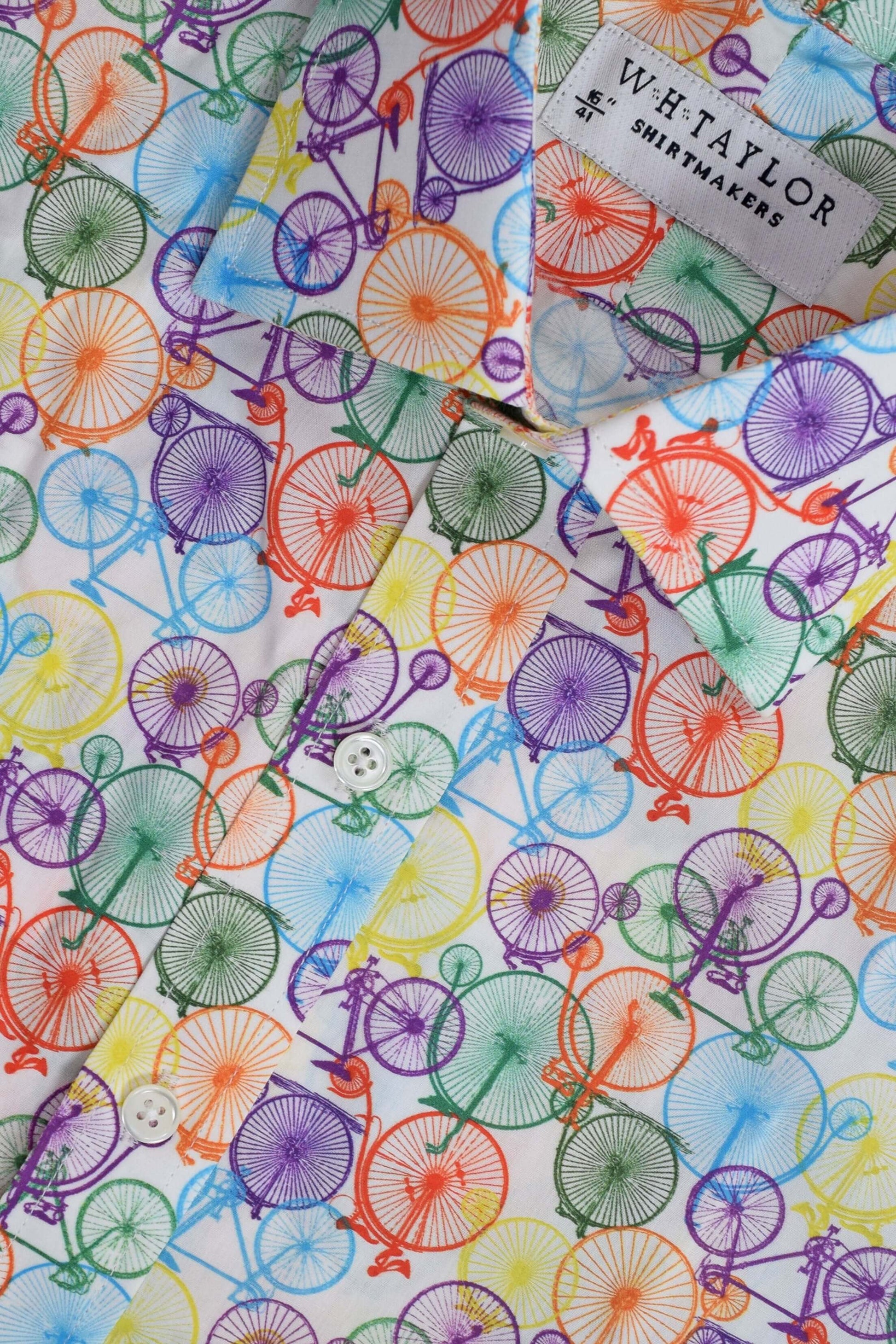 Muti-Coloured Bicycle White Ladies Bespoke Shirt
